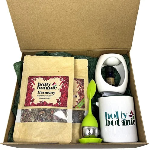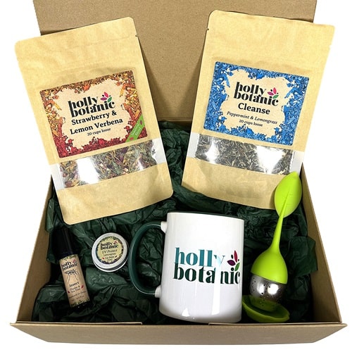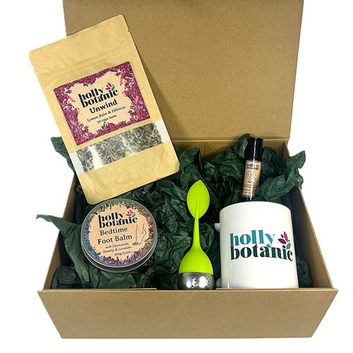 A collection of complementary Holly Botanic products, packaged beautifully in a magnetic-close cardboard box. Perfect as a unique, thoughtful present. Or a treat for you. You deserve it.