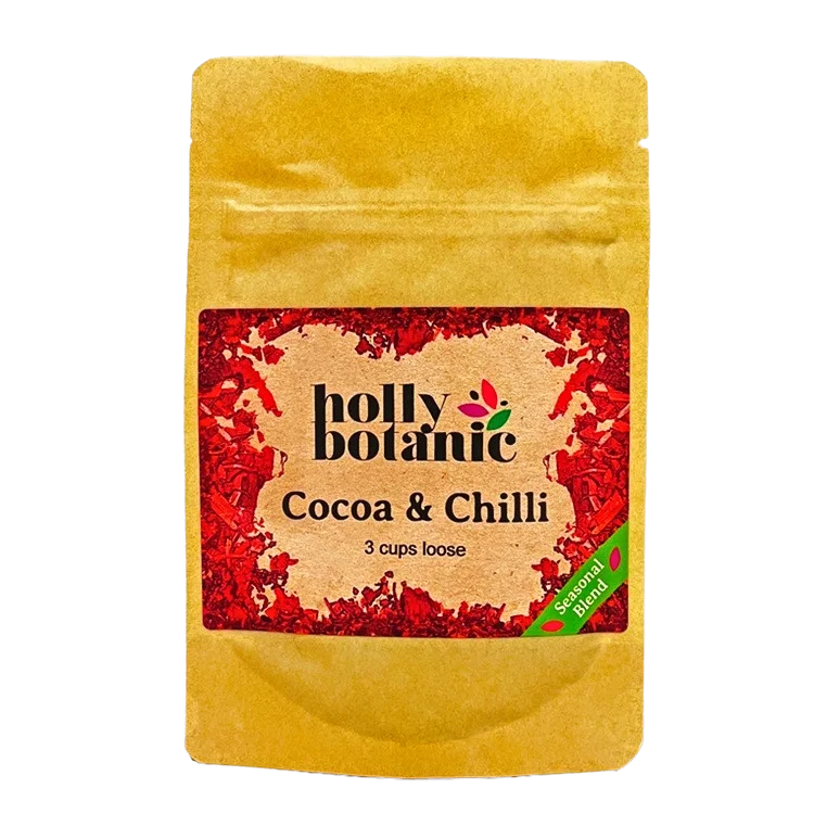 Cocoa & Chilli is available loose and in biodegradable, compostable paper tea bags.