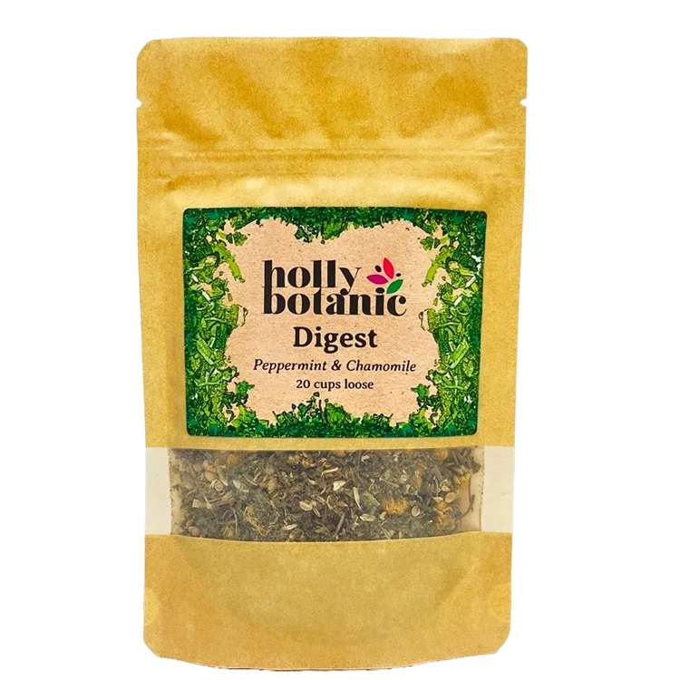 Digest is available loose or in biodegradable, compostable paper tea bags.